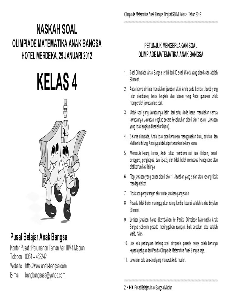 Soal Olimpiade Matematika Kls 4 / Contoh Soal Olimpiade Matematika Sd Kelas 5 Dan Kunci Jawaban Mudah / Doc lembar soal olimpiade matematika dan ipa untuk seleksi.